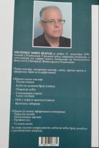 Када би у најкраћем требало описати Миленка Мира Шарца у свијетлу његових књижевних остварења рекао бих да је прије свега пјесник у господском одијелу сатиричара. Ако прочитамо само неколико стихова из збирки његове поезије неће нам бити потребан посебан оглед или доказ да ову тврдњу и доказујемо. Његова поезија јесте по својој форми класична, по језичком богатству разноврсна, а по мотивима завичајно и архетипски аутентична. Са позиције та три принципа она се шири ка универзалним видицима и видиковцима и то је увијек најбољи пут за ствараоца који долази из амбијента српског језика у коме још увијек одолијевају епски начини мишљења, говорења и вредновања. Витална епска поетика која једнако смијешно и једнако озбиљно саопштава кратку и јасну истину у поезији Мира Шарца се судара са поетиком савремених друштвених и књижевних стремљења. Оно што је утемељено у језику и у колективном памћењу ће несумњиво побиједити на поетском плану. Оно друго ће однијети побједу на пољу ревије идеолошко‑политичких догмата. У том судару са извјесним исходом, који је пјесник прихватио као свој и наш колективни усуд, свија се гнијездо језичког парадокса из кога узлијећу афоризми Мира Шарца. Миленко Миро Шарац 12 У атмосфери општег пазаришта ка коме стреми и гледа цијели свијет заслијепљен шареним лажама које бљеште на тезгама, у општој вреви и буци у којој нико никога истински нит слуша нит разумије и гдје су суштински сви тако сами и беспомоћни, непримјетно се у малим љускама смисла замећу и излежу стихови. Када говоримо о Шарчевим афоризмима намјерно их поистовјећујемо са стиховима и поезијом, јер је наш поета један од оних ријетких који остаје вјеран античком препознавању афоризма као поетске врсте. Дакле, афоризам за Мира Шарца није успутна досјетка и шала, већ поезија. Она врста поезије која се огледа у језгровитости језика и у дуго просијаваној мудрости у чијем сијању најчешће учествују многи, чак и читаве генерације. Отуда Шарац није заједљиви циник или скептик, већ трпељиви и храбри стоик који зна да мимо пијачног простора и времена постоје и други простори и друга времена у којима се зацарила врлина. Ка тим сферама узлијећу и његови афоризми у непоколебљивој нади да ће тамо некоме однијети поруку да постоји бројни и заблудјели пук који је бескрај Творевине свео у кругу непрекидне трговине, који на трговишту полаже жртву у облику човјекове личности, али и који вапи за смислом и спасењем.